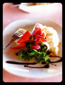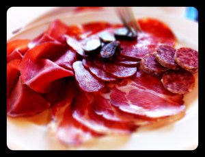 Gli antipasti non sembravano finire mai (non esagerando penso che una quindicina ne siano arrivati). Qui riporto quelli che mi sono sembrati i più interessanti: i salumi abruzzesi e la ricotta servita con fragole e aceto balsamico. Sugli affettati si potrebbe parlare per ore…mi limito a dire che la “ventricina“, ovvero il salame leggermente piccante e tipico abruzzese, è stato davvero una piacevolissima scoperta.