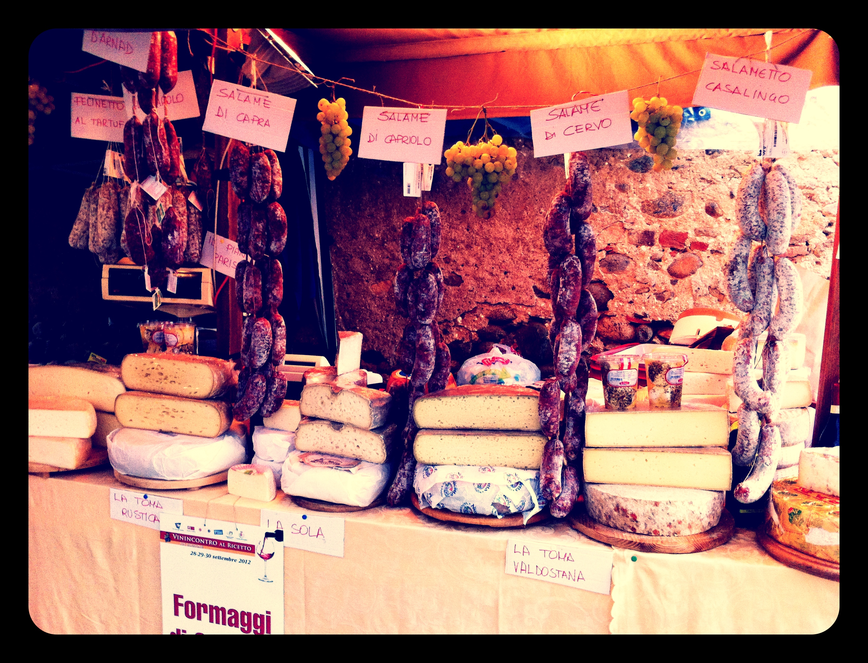 Ogni anno gli appuntamenti più importanti che si svolgono al Ricetto sono “Candelo in fiore” in primavera e il “Vinincontro” in tempo di vendemmia. Ieri si è dato via al Vinicontro che continuerà fino a stasera, domenica 30 settembre. Tanti stand enogatronomici con le specialità del territorio e le eccellenze piemontesi, arte, ma anche costumi, musiche e danze dal sapore medievale. Ieri Ragout è andato a darci un’occhiata e ha incontrato gli abitanti di Candelo e i piccoli produttori di vino, dolci, formaggi e altro ancora. Qualche consiglio per gli assaggi. Il Salame Patata dell’azienda San Martin dell’Eporediese (Ivrea) è davvero un salume insolito: 50% suino e 50% patate, si può spalmare sul pane o cuocerlo per sughi rustici.
