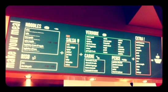 Se non siete soddisfatti delle proposte potete sempre fare il vostro piatto noodles “make your meal” scegliendo tra i tanti ingredienti offerti e scoprendo gli accostamenti più insoliti! I prezzi variano dai 2 euro della zuppa di miso ai circa 10 euro per i Noodles, sempre con la bevanda compresa. Direi un ottimo posticino per una pausa pranzo o una cena informale in Asian style.