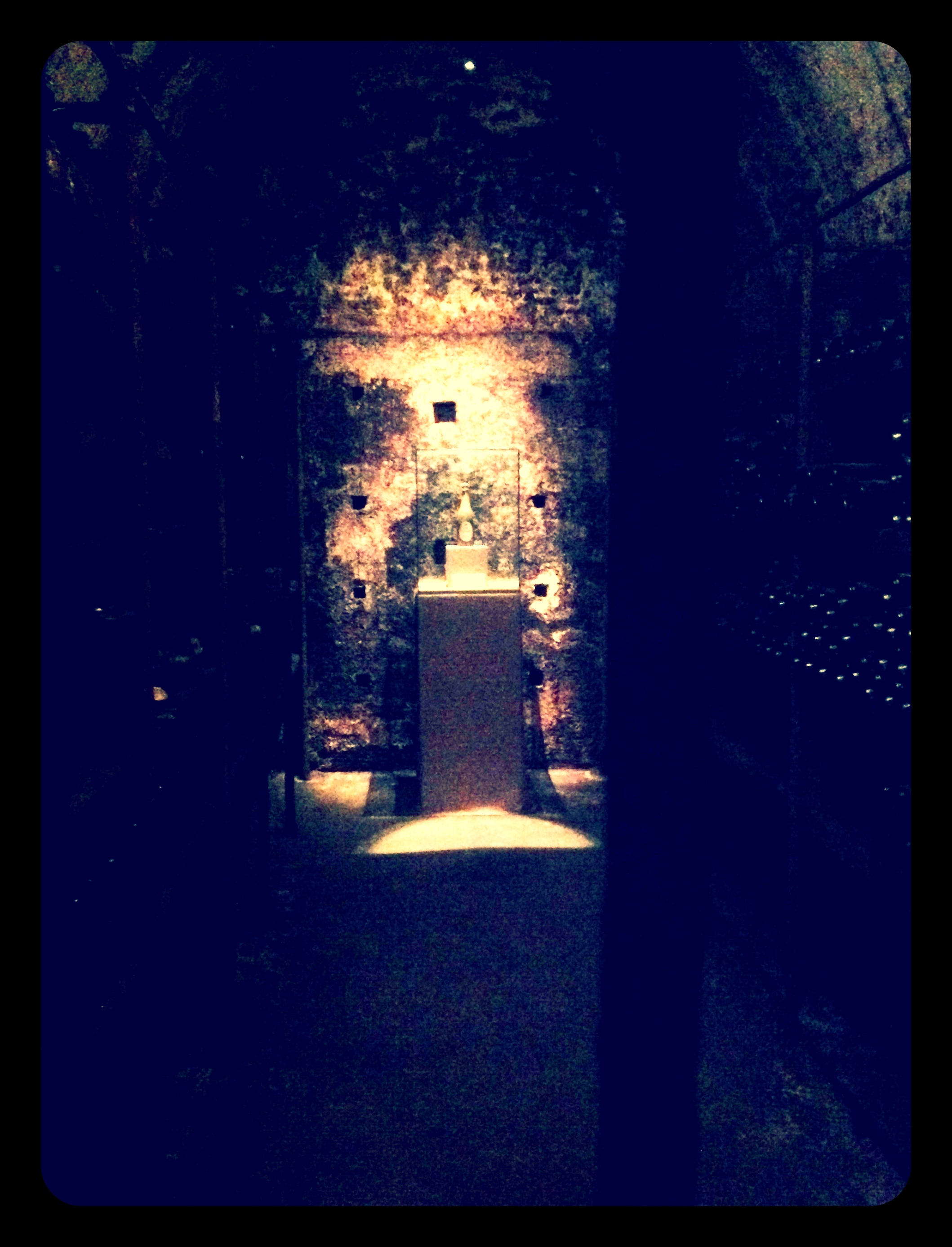 Visitare queste segrete è un’esperienza quasi mistica, ci si addentra sempre più profondamente in un mondo perpetuo. Si percorrono al buio i corridoi con pareti di bottiglie che recano lavagnette con su scritta un nome, un numero, come in una via crucis. A tappe. Fino ad arrivare al cenacolo. Una piccola cella dove è conservata al suo interno una delle mitiche bottiglie del ’61. Eccola lì. L’icona a cui essere devoti per quello che è diventata oggi la Franciacorta.