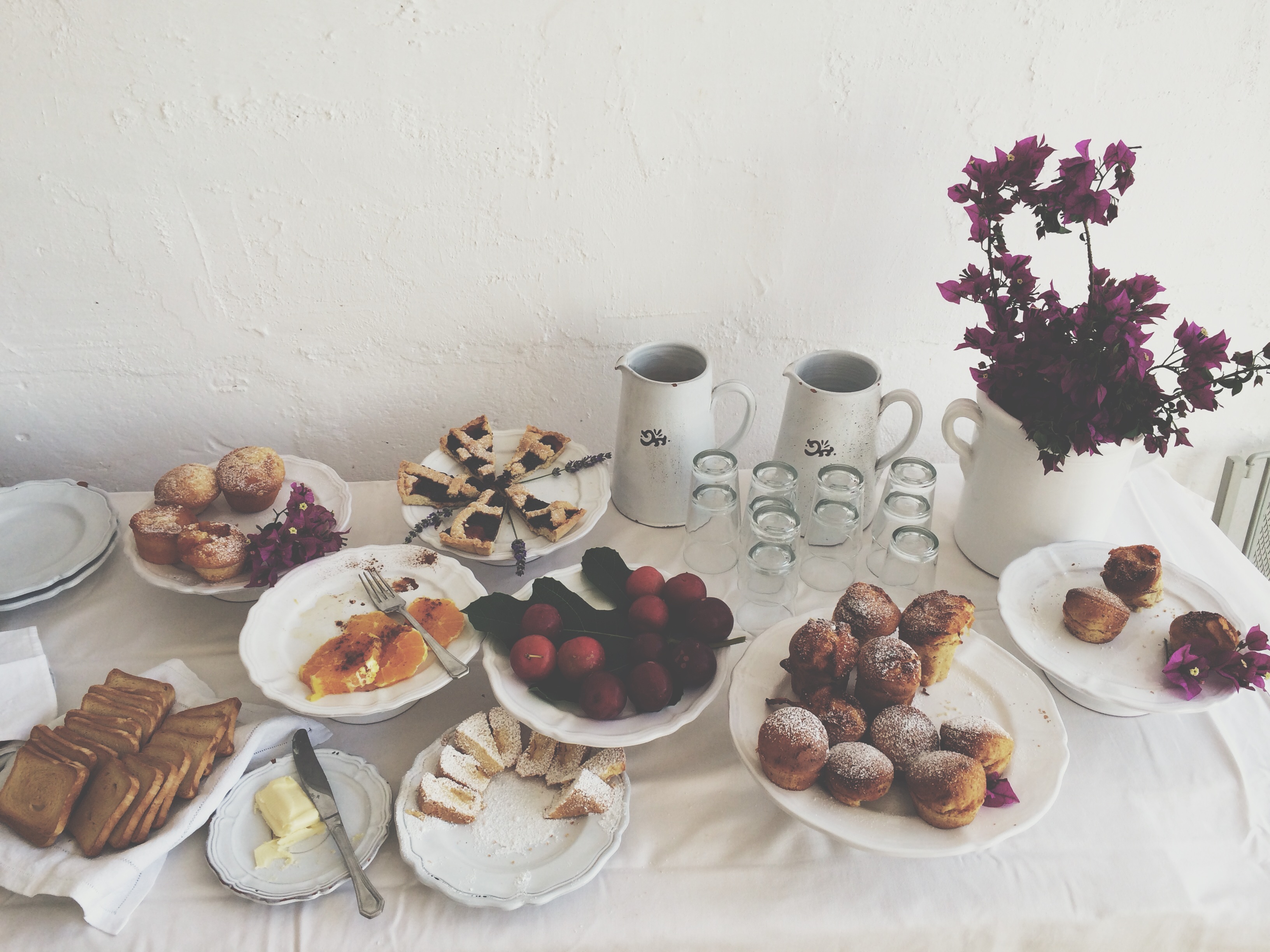 Qui tutto è in perfetta armonia. Nel salone principale sembra di tornare indietro di tanti anni, a quando in Masseria si lavorava a pieno regime. I soffitti a stella altissimi, le credenze ricolme di ceramiche di Grottaglie, le tovaglie antiche e candide, i vasi con i fiori di campo. La grandezza di questo posto è inimmaginabile. Da ogni stanza si accede ad un’altra con grande stupore, come in una scatola cinese. La bellezza degli arredi, degli oggetti, dei tessuti è di una delicatezza rara.