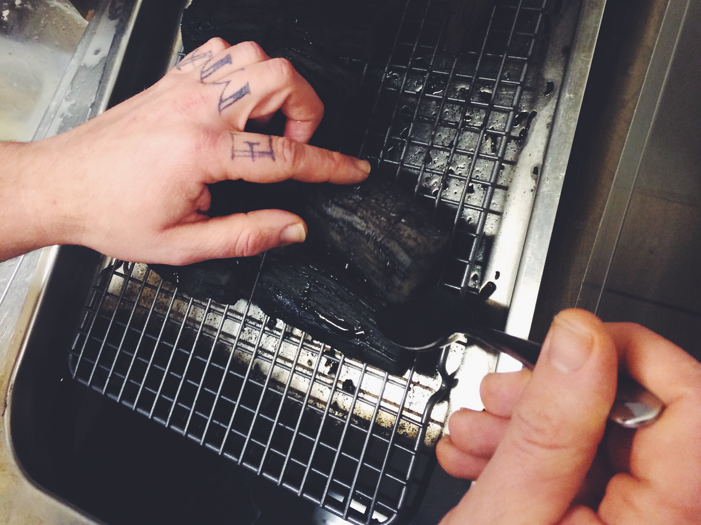 Come ad esempio il ritorno all’istinto primordiale di nutrirsi con le mani di cibi crudi. Nel piatto “Il cervo e la sua storia…”, viene servito un filetto di cervo letteralmente al sangue, sopra ad una pietra, da mangiare rigorosamente con le mani. Per questo, a parte viene fornito anche un intingolo alla resina di pino per rinfrescarsi le mani.