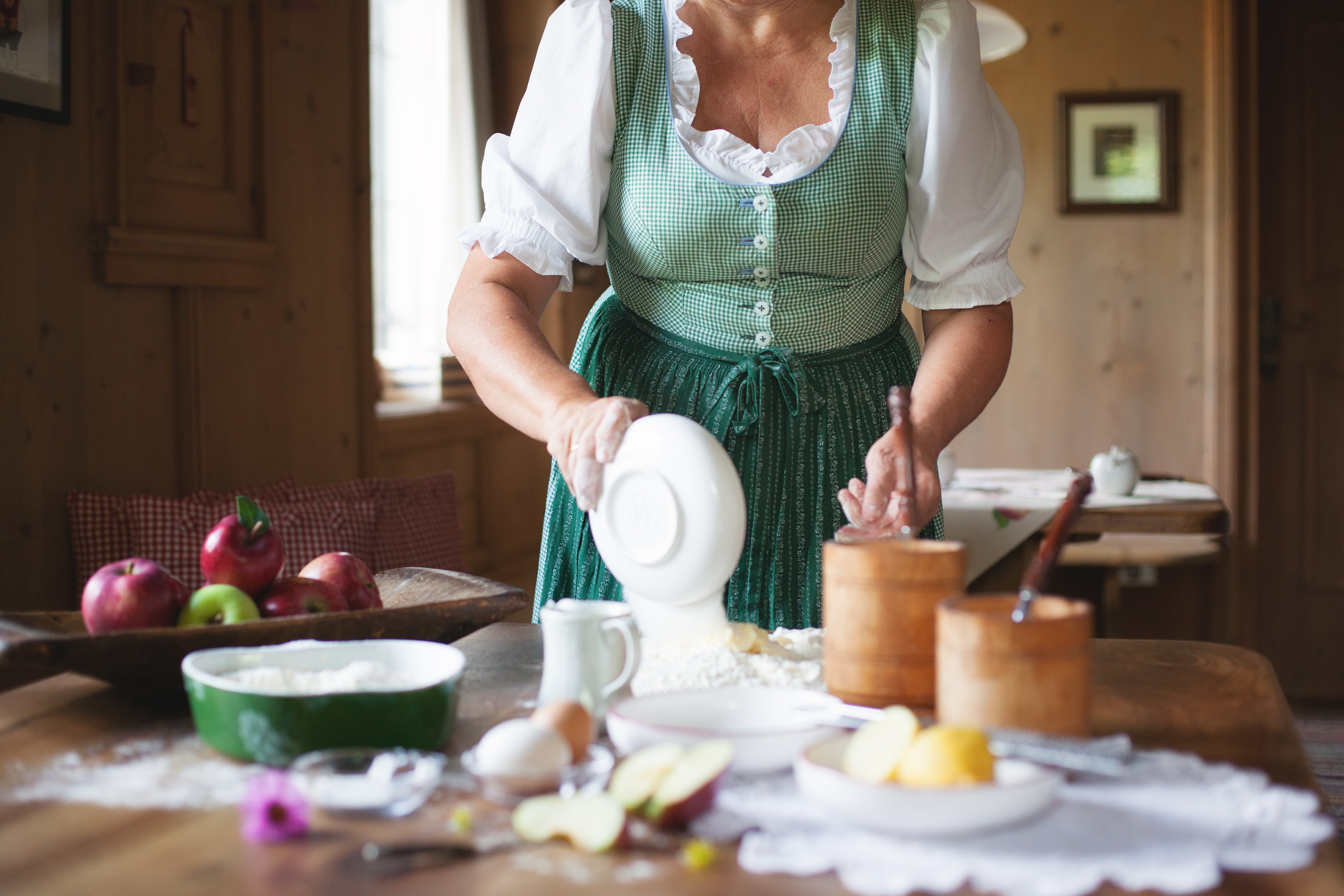 Qui abbiamo potuto scoprire in cucina come preparare degli ottimi canederli e il Kaiserschmarrn, un tipico dolce che assomiglia a un pancake e viene servito con zucchero a velo e marmellata di mirtilli rossi o frutta.