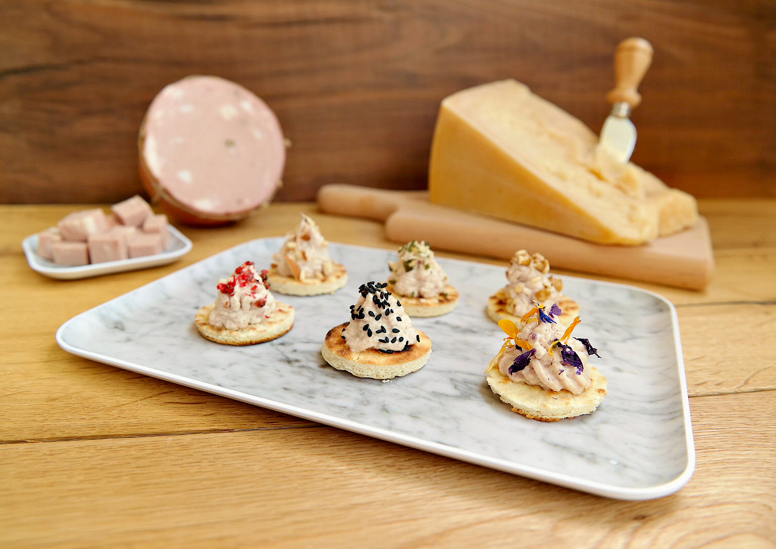 Tartine di Piadina Romagnola IGP con mousse di Mortadella Bologna IGP e Grana Padano DOP