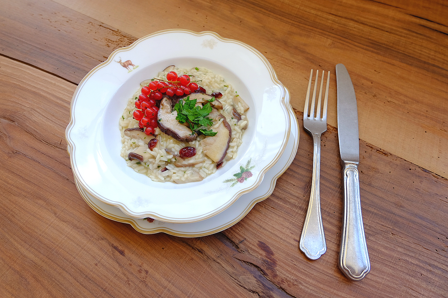 Ricetta del risotto ai funghi porcini con cranberry, ribes rosso e olio Zucchi aromatizzato all’aglio
