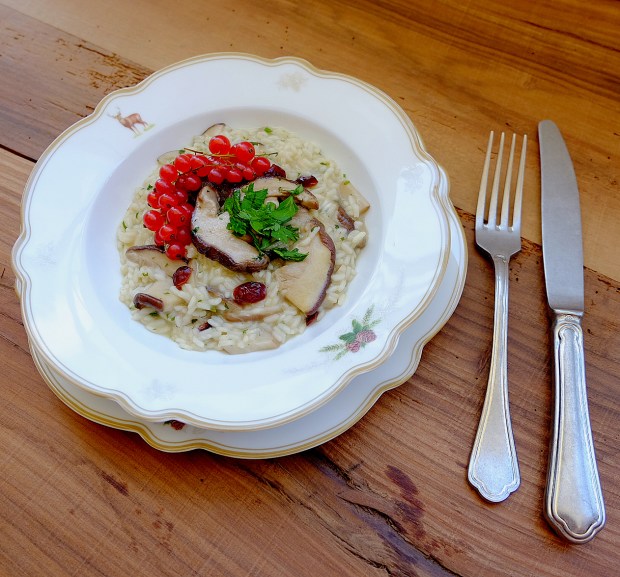 Risotto ai funghi porcini con ribes rosso e olio extra vergine d’oliva Zucchi aromatizzato all’aglio